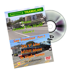 In this DVD we view the 'F' line area by area from the Castro to Fishermans Wharf and also its modern history. In total 22 out of the fleet of 32 individually painted PCCs are seen in service along with a couple of their Vintage cars. We then look at some of the interesting aspects of the MUNI Metro system and various street scene views.